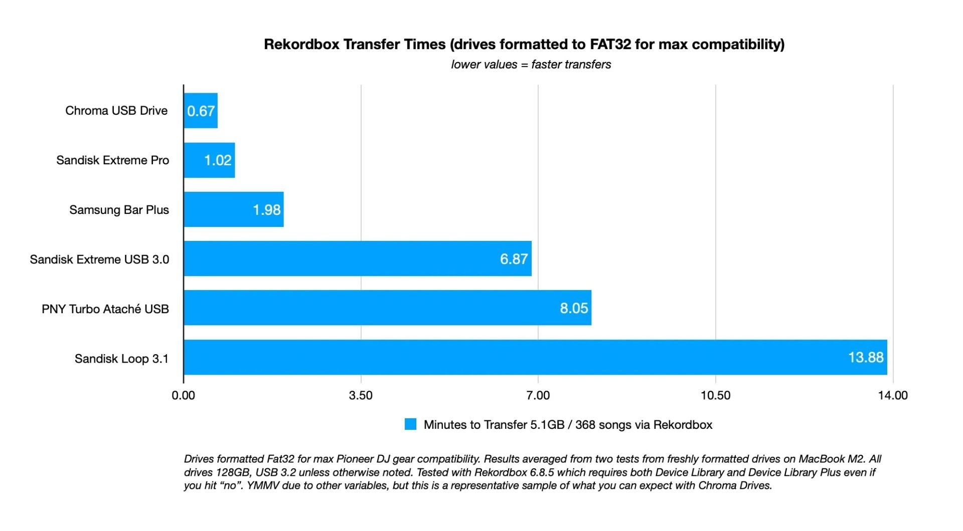Here's how our drive stacks up against others when exporting from Rekordbox. Rekordbox transfers aren't the same as copying a 10GB movie file - they move and check hundreds of smaller files: