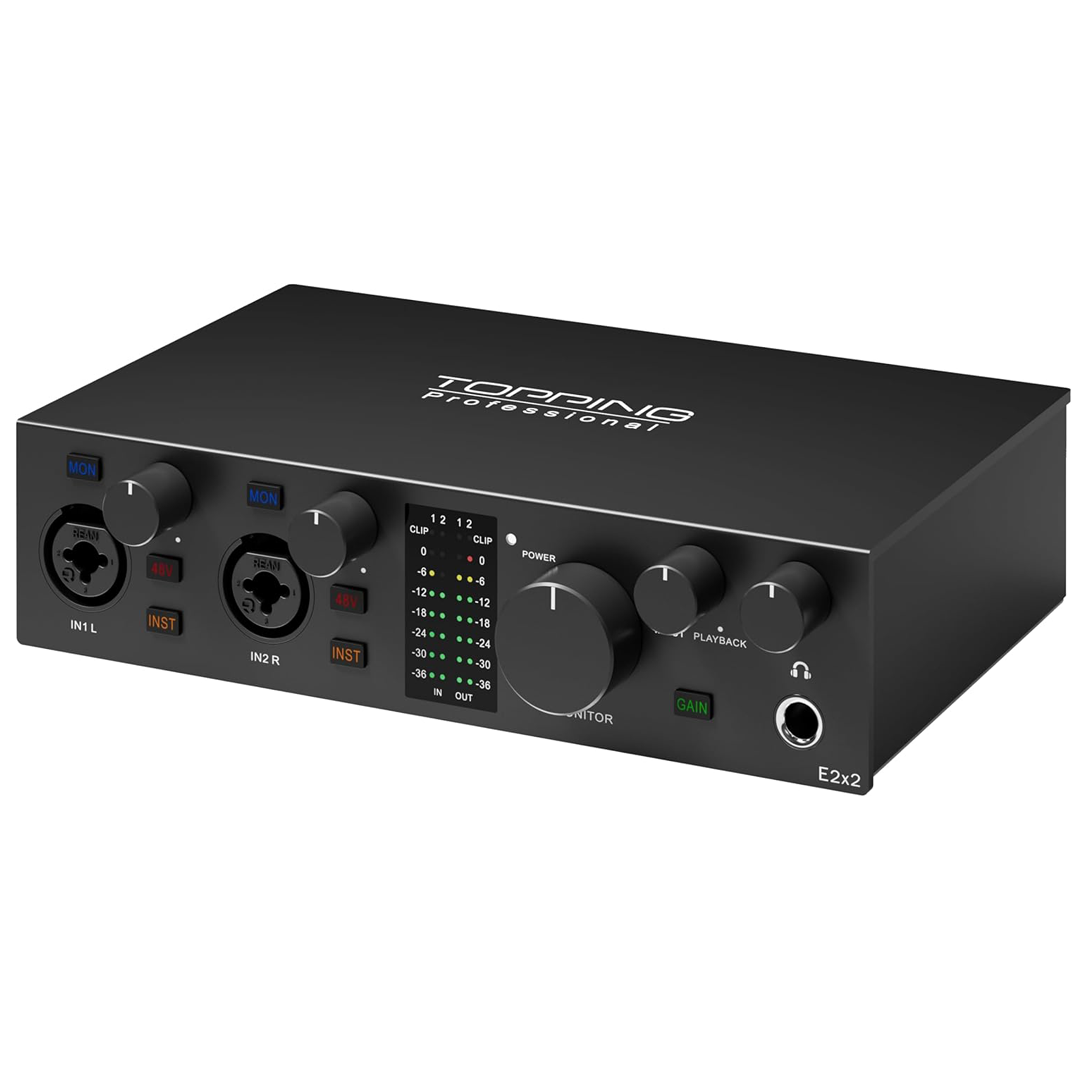Topping, E2x2 ile müzisyenler ve ses profesyonelleri için tasarlanmış mükemmel bir ses arayüzü sunuyor. Bu harika arayüz, mükemmel şeffaf kayıt ve oynatma için çok yüksek bir performans seviyesi sunar.
