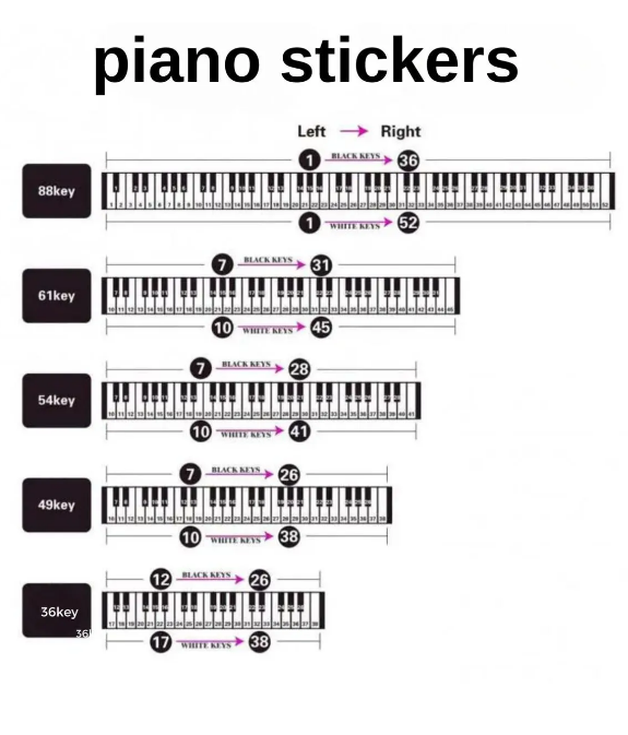 HBK Piyano Org Klavye Tuşları Için Siyah Nota Sticker Etiketi Aksesuarı 37-49-54-61-88 Tuşlara Uygun